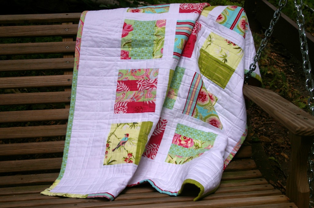 in the end, i decided to go with slightly wonky lines, both vertical and horizontal (good suggestion, ya’ll). i also decided to go with a pieced binding (my first!) since the backing fabric was just one solid piece of pink flannel.
