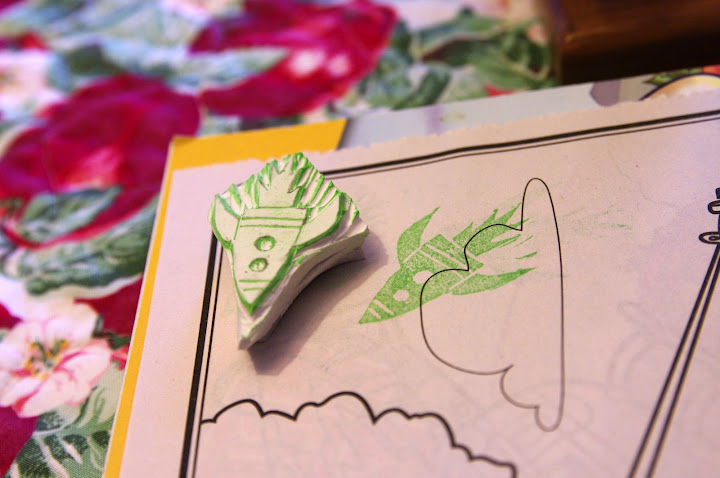 not to sound braggy, but i even impressed myself. i had no idea i knew how to draw and carve such a cool looking stamp! the best part? i still have the original pencil drawing and could transfer it to the carving medium again to make another rocket ship stamp for myself! this is really getting to be an addiction.