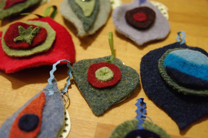 i was excited this year to be invited to participate in small fox’s first annual ornament swap. my initial response had been that i was too busy to participate, but after a tiny bit of thought, i realized that i still had some felt ornaments that i’d made two years ago that i’d never gotten around to selling. so i sent off these: