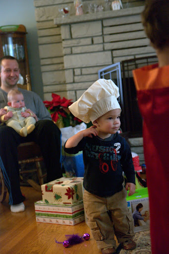 although i did my best to keep licensed characters out of my kits, this outfit immediately became known as “super why” to this little fan of the show. i wish i had a video of him trying to put the cape on by himself the first time. it took a number of attempts, but he was a pro by the end of the day and had worn the cape and mask almost the whole time. he also carried the suitcase with him everywhere and even asked if he could sleep with it. his brother was willing to try out the chef hat.