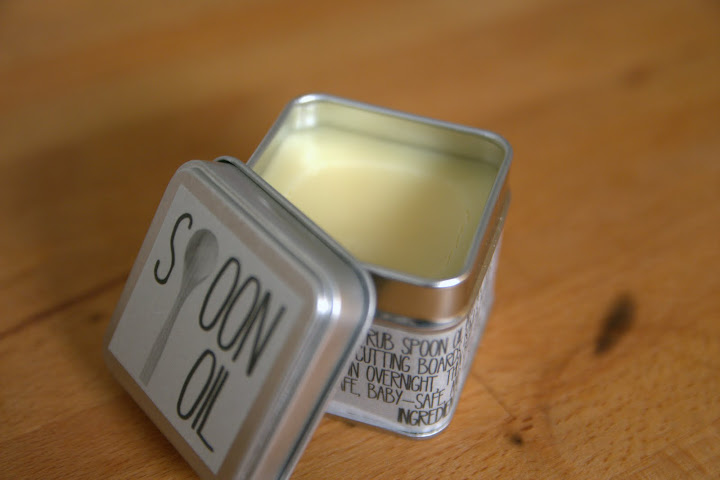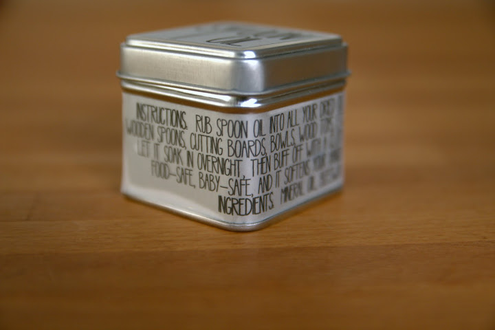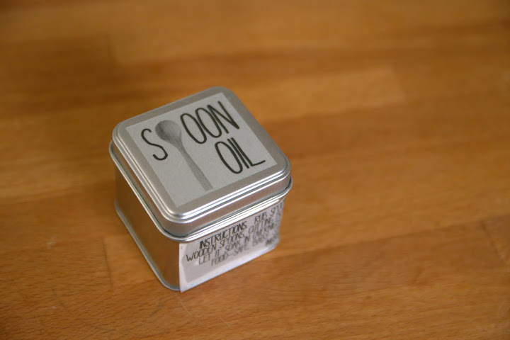 one of the hand-made gifts i gave this year was spoon oil. i’d made some for myself earlier, using this recipe and tutorial and really liked the way the product turned out. plus, then i found these cute tins on sale at michael’s and a stocking stuffer idea was born! (i think my favorite part might have been developing the packaging, but that’s probably no surprise.)