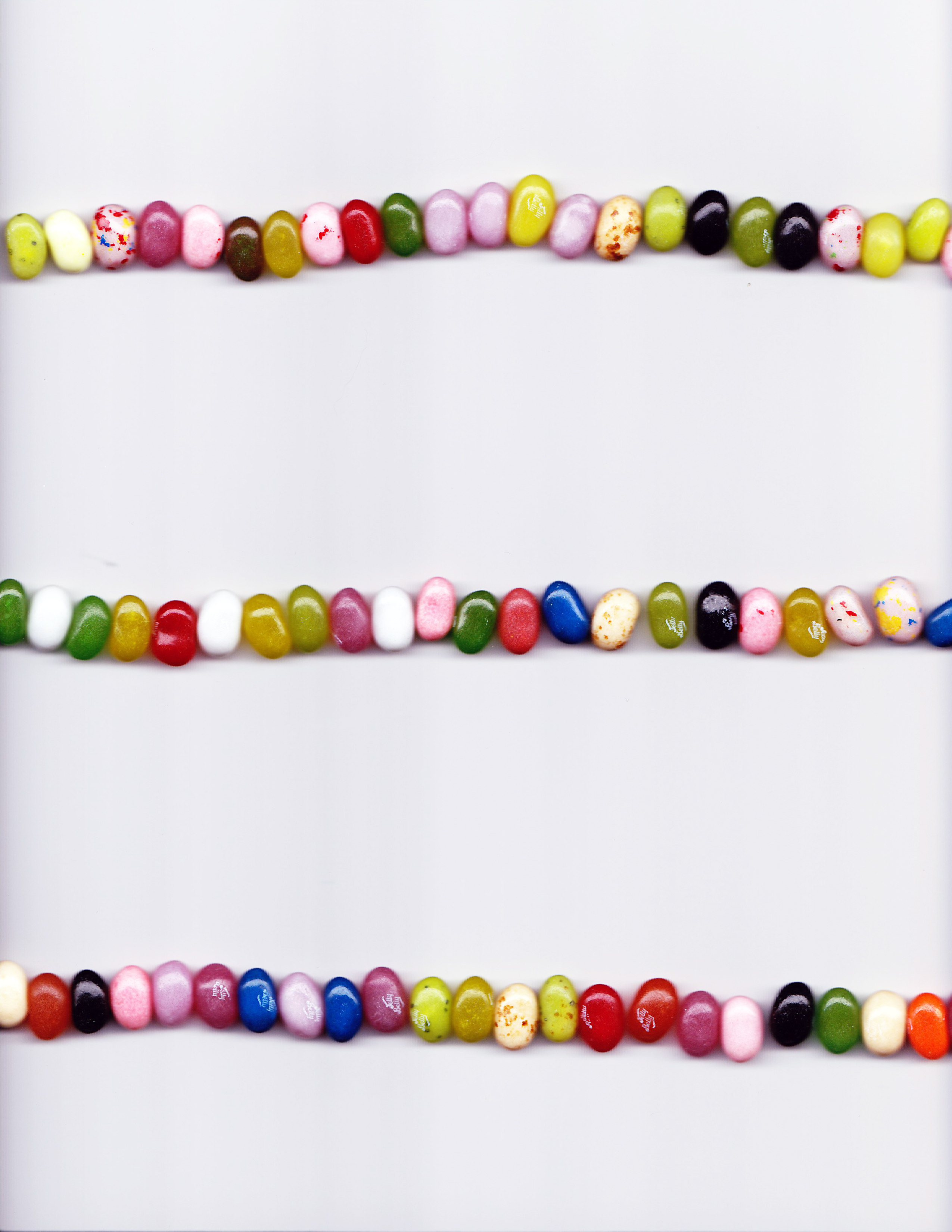 cut into three approximately equal strips. aim to get the jelly bean stripe in the middle of the piece of paper.