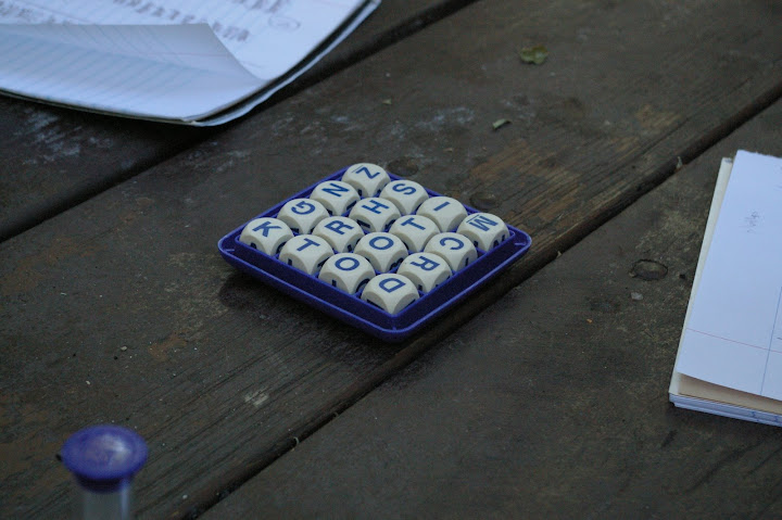 playing boggle and finding the word “microdot” (and yes it is a word in the scrabble dictionary!)