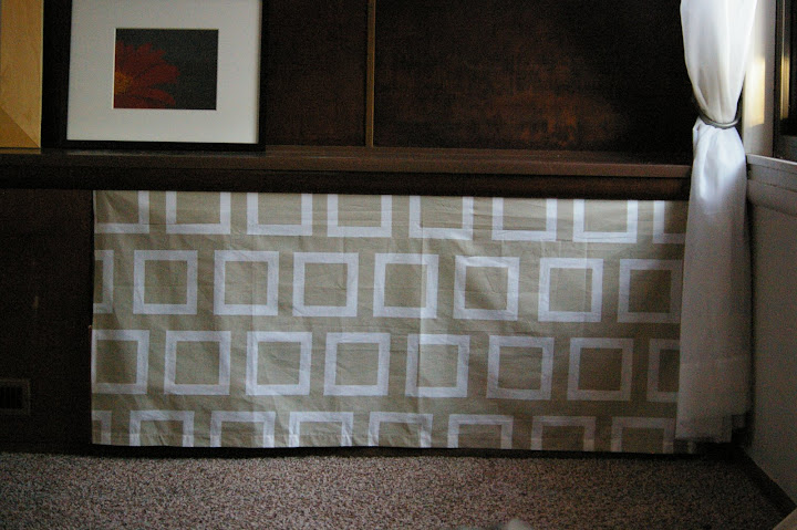 i don’t know if they will stay up permanently, but i’ve been wanting some sort of cover like this for a looooong time. i’d prefer to have some sort of a curtain that i can push aside (this one’s just thumbtacked to the inside edge of the shelf) and that will cover the paneling & vents that you can see just to the left of the curtain in the photo above, but for now, this was a surprisingly simple fix and i am quite fond of the way it turned out.