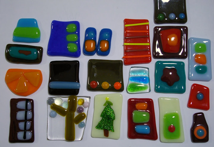 first, the fused glass pendants. i’m pretty happy with the way they turned out. i like some better than others. like that sort of beer bottle shaped one in the bottom corner. and the orange slice on the other side. (mr. h-s helped with the orange slice.)