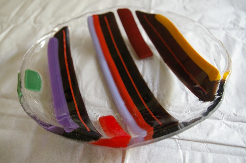 and lastly, an apology to mr. happy stuff. when i was posting our finished art projects the other day, i somehow missed his fused glass bowl. here’s how it turned out in the end. isn’t it great?