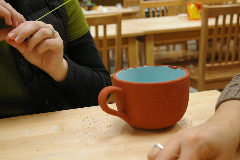 rebekah chose to paint this great mug. apparently, when after it’s fired, it won’t be red at all!