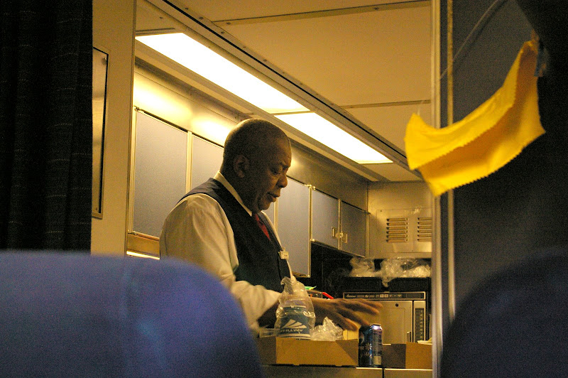 the next morning, it was time to head home. i love that train travel is so unfettered. the location where i caught the train didn’t even really have a station–just a sidewalk and a small shelter (like a nice bus stop). you wait there for the train and when it stops, a train employee hops out, puts out a stepping stool and calls for people to board. they don’t even check your ticket until the train is on its way again. i splurged (all of $13!) to sit in business class on the way home to see if it was any better. here’s the scoop about the perks of business class on amtrak: