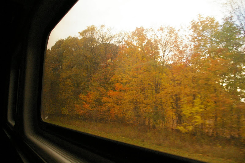 the grey clouds just made my train ride seem all the more cozy. beautiful fall scenery rushed past my window.