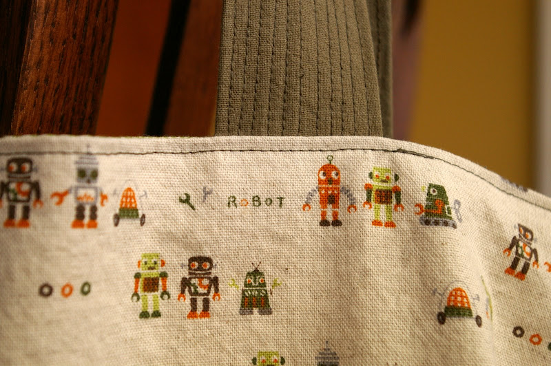 and bag no. 2, featuring some super cute japanese robot fabric that i’d bought in minneapolis: